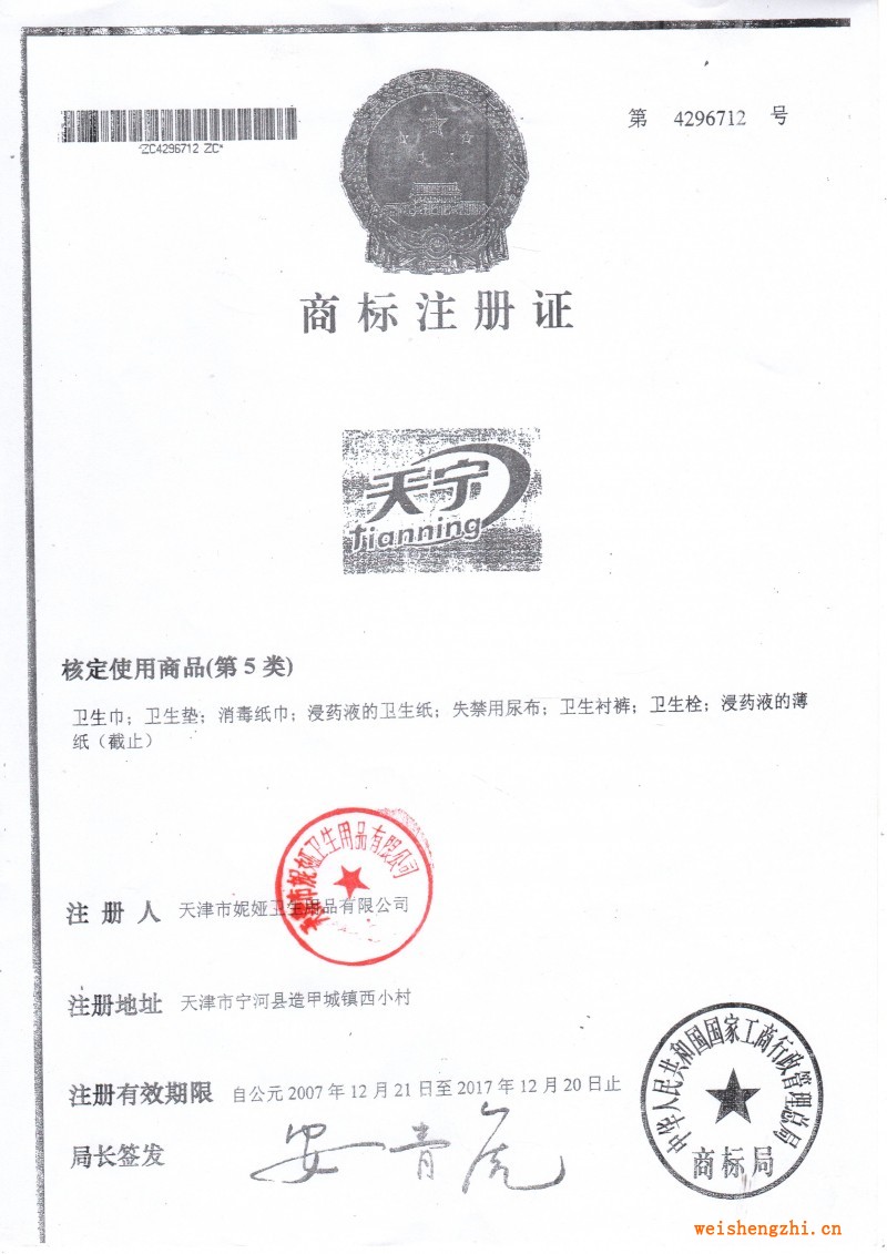 天津妮娅卫生用品有限公司专门生产经营妇女卫生用品、卫生巾、卫生护垫及床垫