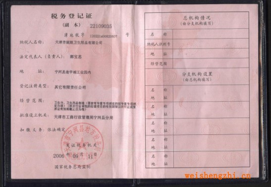 » 税务登记证